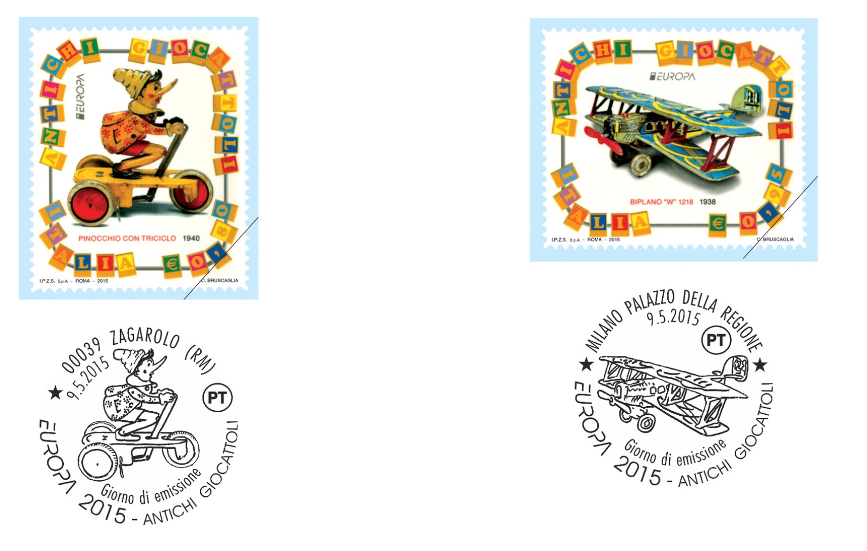 Emissione di due francobolli celebrativi di Europa 2015 dedicati a: “antichi giocattoli”