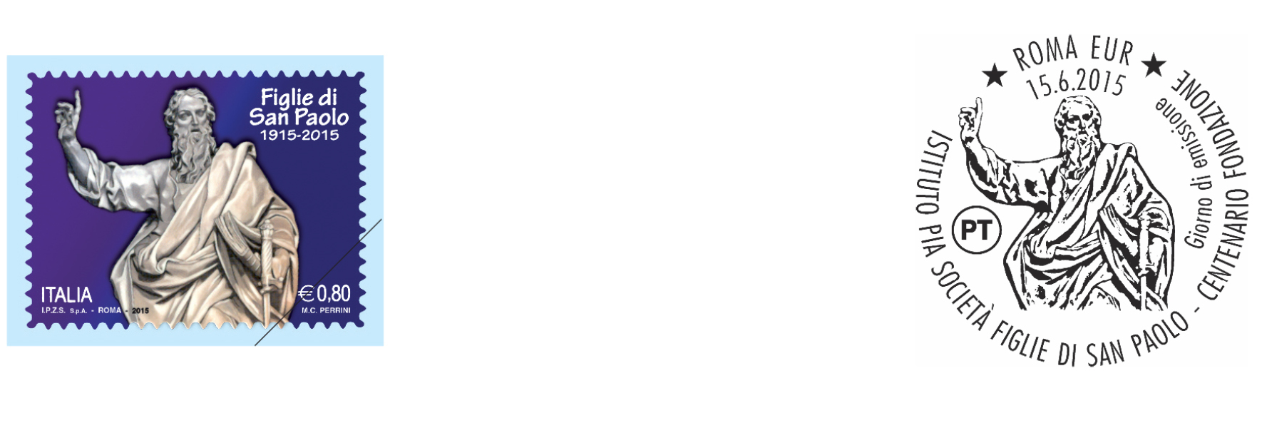 Poste Italiane comunica che il Ministero dello Sviluppo Economico ha emesso il giorno 15 giugno 2015, un francobollo celebrativo dell’Istituto Pia Società Figlie di San Paolo, nel centenario della fondazione,