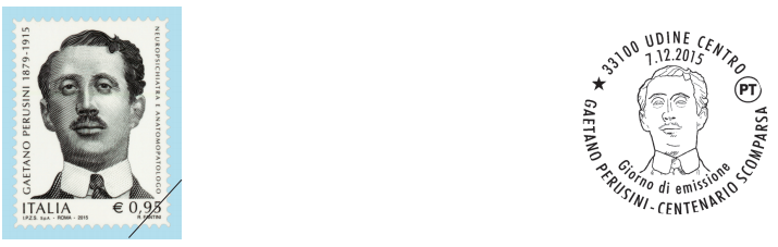 Poste Italiane comunica che il Ministero dello Sviluppo Economico ha emesso il giorno 7 dicembre 2015, un francobollo commemorativo di Gaetano Perusini, nel centenario della scomparsa, nel valore di € 0,95.