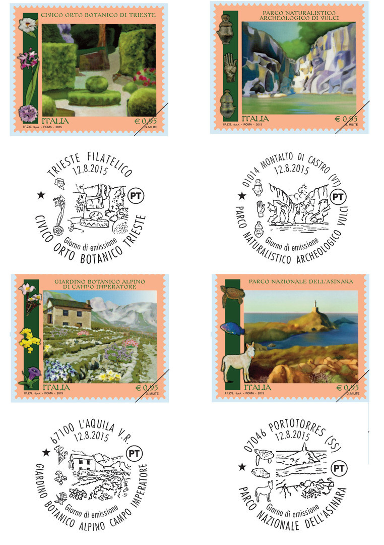 Poste Italiane comunica che il Ministero dello Sviluppo Economico ha emesso il giorno 12 agosto 2015, quattro francobolli ordinari appartenenti alla serie tematica “il Patrimonio naturale