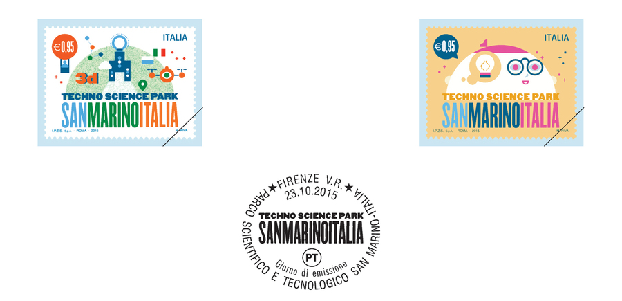 Le vignette interpretano entrambe il Parco Scientifico e Tecnologico San Marino - Italia e raffigurano