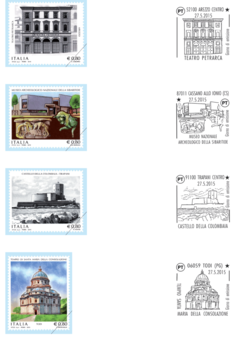 Poste Italiane comunica che il Ministero dello Sviluppo Economico ha emesso il giorno 27 maggio 2015, sette francobolli ordinari appartenenti alla serie tematica “il Patrimonio artistico e cultu- rale italiano” dedicati a: Teatro Stabile di Torino, Forte di Fenestrelle, Castello Malatestiano di Longiano, Teatro Petrarca in Arezzo, Museo Archeologico Nazionale della Sibaritide, Castello della Colombaia in Trapani e Tempio di Santa Maria della Consolazione in Todi, nel valore di € 0,80 per ciascun francobollo.