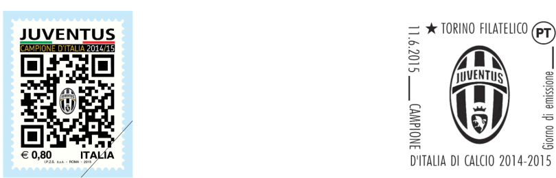 Completano il francobollo la leggenda “JUVENTUS CAMPIONE D’ITALIA 2014/15”, la scritta “ITALIA” e il valore “€ 0,80”.