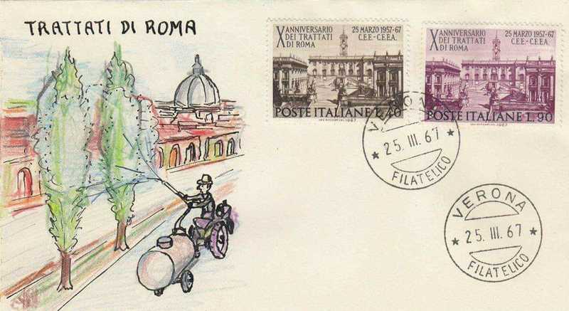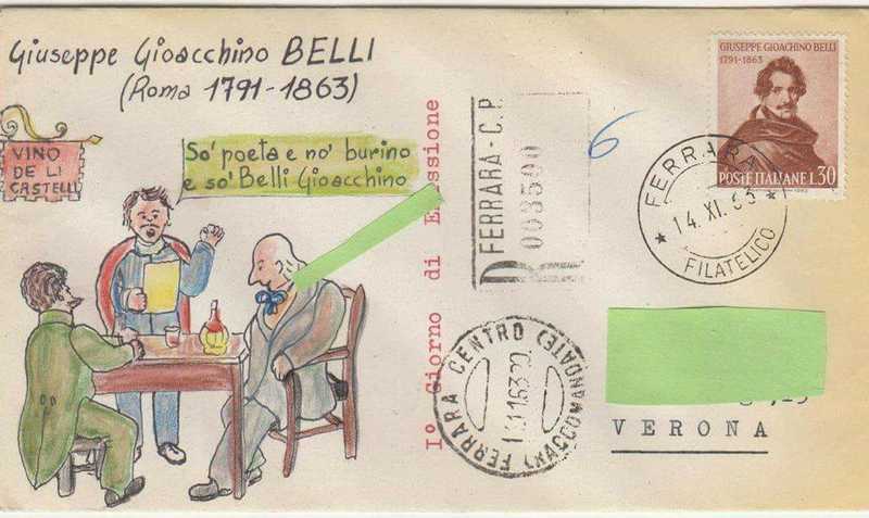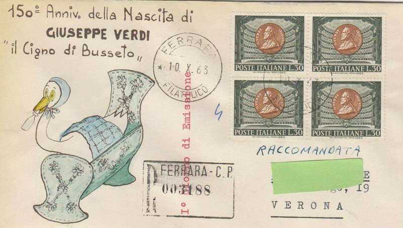 L'amico ferrarese Giorgio Borghini che vive a Verona da diversi lustri ed è appassionato di Filatelia mi ha omaggiato di alcune "buste primo giorno" disegnate da lui stesso a mano negli anni sessanta che credo siano meritevoli di un piccolo spazio nella pagina della Fondazione.