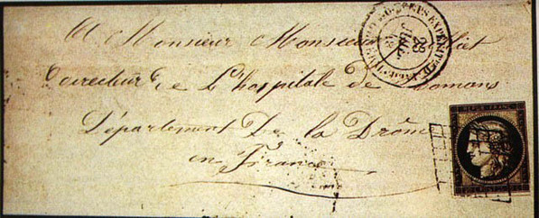 La prima lettera al momento conosciuta, spedita da Roma reca la data del 23 luglio 1849, il francobollo da 20 centesimi è annullato con la griglia francese e sulla soprascritta è impresso il bollo a doppio cerchio con la dicitura "Corps Expedit.d'Italie/Q.er General"