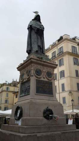 Nel luogo del rogo sorge ora un monumento, inaugurato nel 1889, in cui il filosofo di Nola volge il suo sguardo severo verso il Vaticano.
