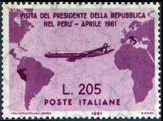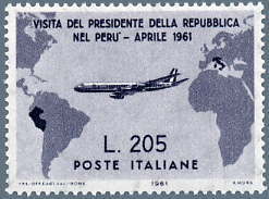 Il 6 aprile del 1961 era in programma la partenza da Roma del Presidente della Repubblica, Giovanni Gronchi, per un viaggio ufficiale in Sud America. Qualche giorno prima vennero messi in vendita negli Uffici Postali tre francobolli con lo stesso contenuto: un aereo "DC 8" e una carta geografica nella quale l' Italia ed i Paesi che sarebbero stati visitati (l' Argentina nel valore da 170 lire, di colore azzurro; l' Uruguay in quello da 185 lire, verde grigio; ed il Peru’ in quello da 205 lire, color rosa).