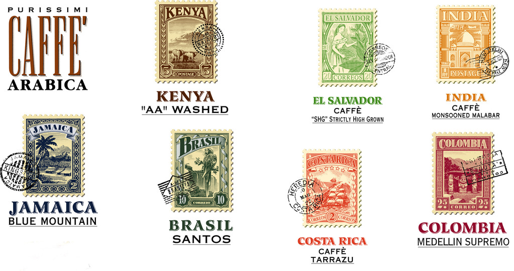 Rassegna di alcuni francobolli sul caffe emessi in Italia e nei Paesi Centro-Sudamericani, in Africa e in Asia