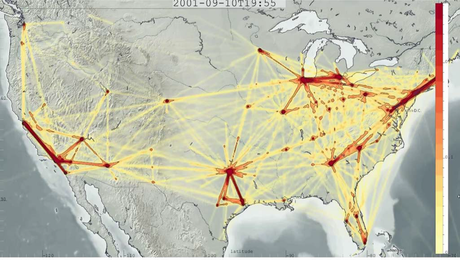 Figure 2 - Density maps of trajectories - Air traffic in the USA [9]
