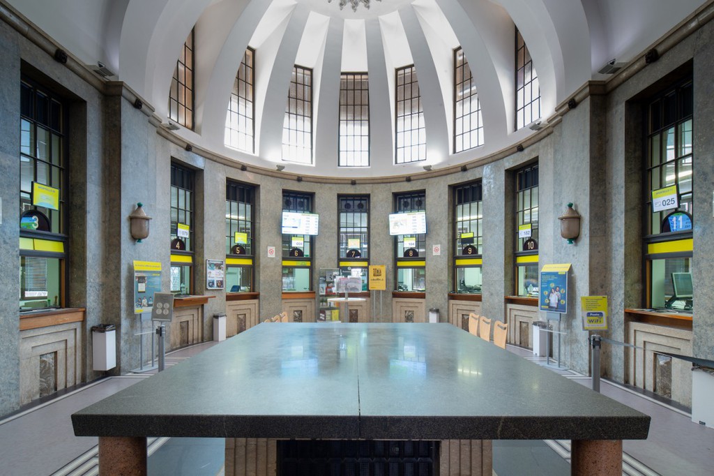 La facciata dell’edificio è interamente decorata da marmo bianco che rimanda all’arte classica mentre il retro del palazzo fu invece concepito seguendo lo stile architettonico razionalista tipico del Novecento.