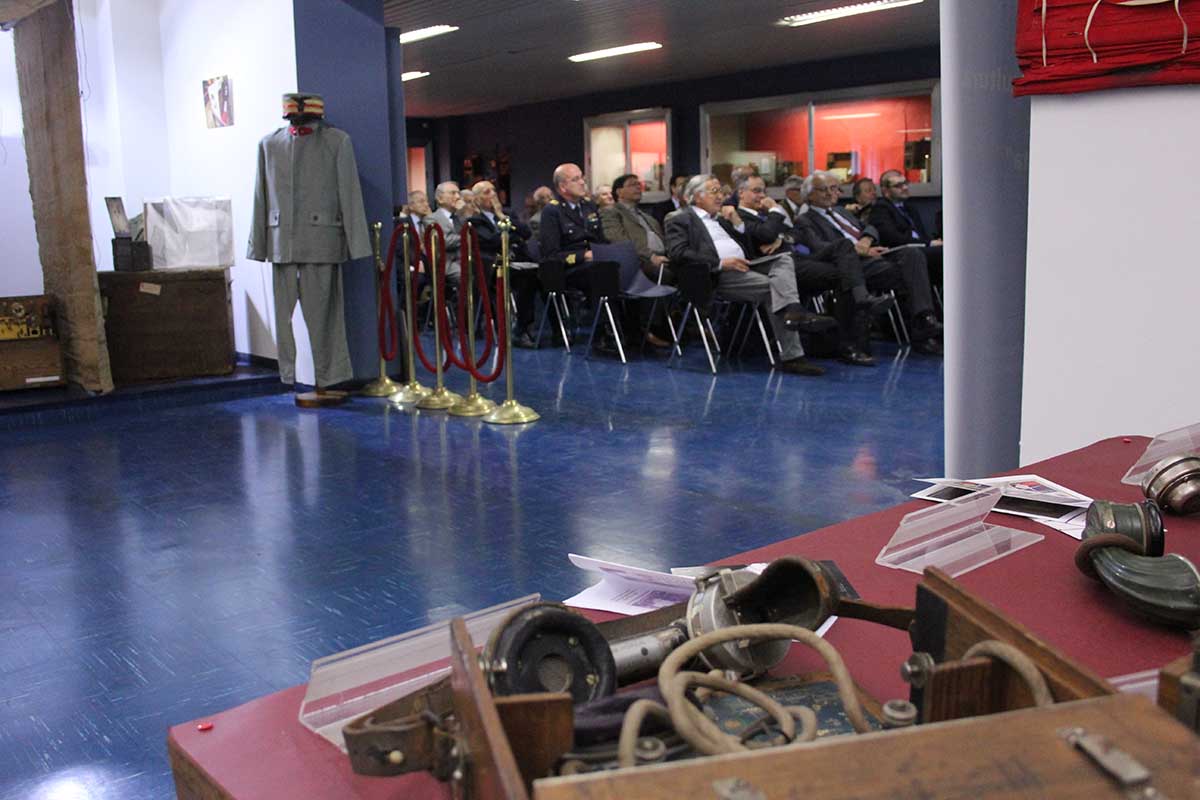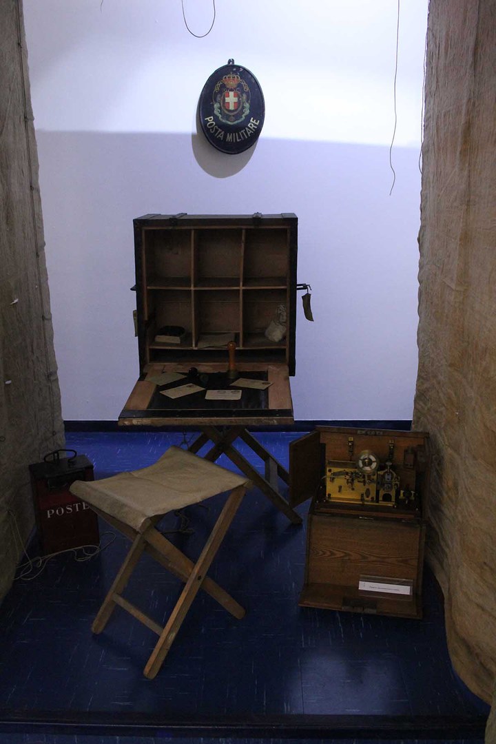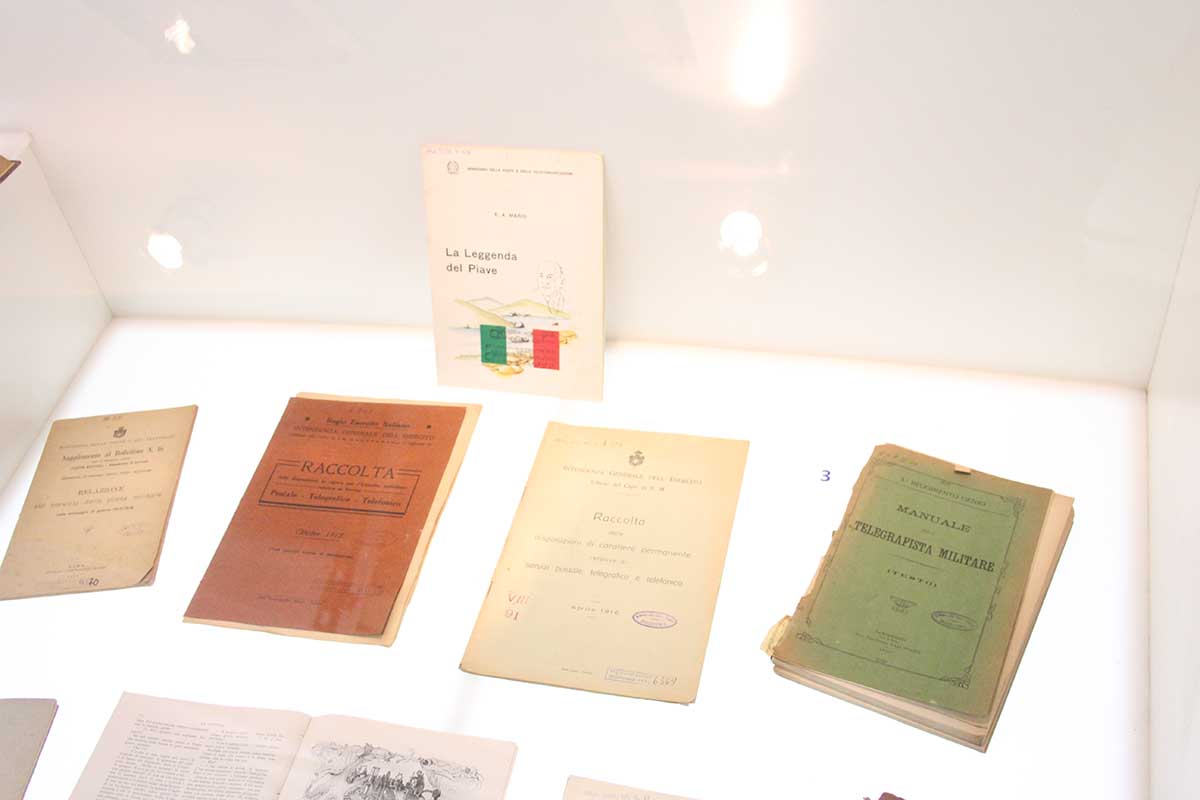 Nella sede del Museo è stata allestita una esposizione di documenti e apparati di comunicazione di vario tipo: dalle prime radio usate per i collegamenti aereonautici ai dispositivi per la trasmissione dei dispacci con colombi, dalle cartoline distribuite ai combattenti ai bozzetti di francobolli, ai colombigrammi scambiati al fronte, oltre a una nutrita serie di documenti e di libri sul tema. Il materiale esposto proviene dalle raccolte del Museo Storico, dell'Istituto Storico e di Cultura dell'Arma del Genio e da collezioni private. La mostra è stata inaugurata
